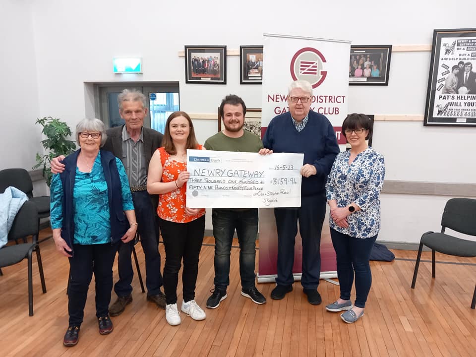 Lisa and Stephen Rea who took part in a skydive, to raise money for Newry & District Gateway Club. They presented the club with £3159.94